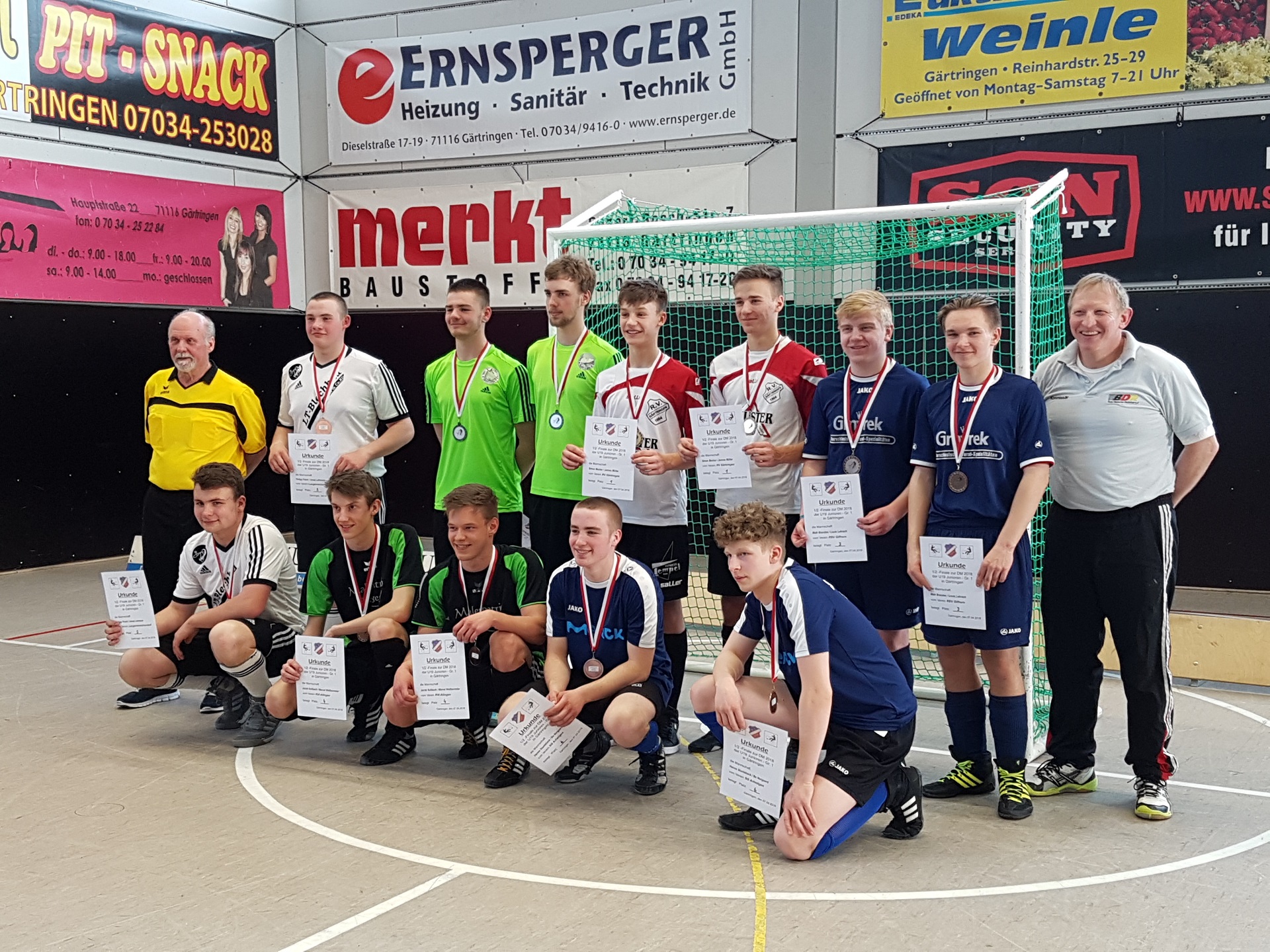 Der erste Gegner für Gifhorn (Louis Lehrach/Maik Brandes) hieß SG Langwolschendorf. Durch ein Fehlpass konnte Langwolschendorf in Führung gehen und das Ergebnis hielt sich bis zur Halbzeit. Halbzeitstand 0:1. Aber die Gifhorner haben sich dadurch nicht unterkriegen lassen und konnten sich aufraffen, um den Ausgleich zu erzielen. Durch ein bisschen Glück konnte Gifhorn letztendlich in Führung gehen und die ersten drei Punkte sichern. Endstand 2:1. Man konnte also von einem sehr gelungenen ersten Spiel reden. Das nächste Spiel lief für unsere Gifhorner noch besser. Gegen SG Arheilgen konnten sie frühzeitig in Führung gehen und somit die Gegner schnell unter Druck setzten. Halbzeitstand 4:1. In der zweiten Hälfte hieß es nur noch das Ergebnis zu halten, um die nächsten 3 Punkte zu sichern. Nach dem Anstoß konnte Arheilgen einen Anschlusstreffer erzielen. Gifhorn spielte sehr konzentriert und gelassen. Durch sehr gute Spielzüge konnten sie weiter vier Tore erzielen und das Spiel mit 8:2 gewinnen. Ein erstklassiges Spiel, so Betreuer Thomas Hentschel. Nach einem Spiel Pause mussten sie gegen den Gastgeber ran. In diesem Spiel konnte Gärtringen in Führung gehen. Gifhorn riet leicht unter Druck, trotzdem wollten sie alles geben, um das Spiel zu drehen. Nach einem Eckball konnte Gärtringen das 0:2 erzielen. Halbzeitstand 0:2. Hentschel motivierte die Spieler Lehrach und Brandes, dass alles noch offen sei. Durch einen ausgezeichneten Spielzug, konnte Gifhorn den Anschlusstreffer erzielen. Leider fehlte ein bisschen Zeit, um das Ergebnis auszugleichen. Endstand 1:2. Im nächsten Spiel mussten sie gegen den VMC Konstanz. Diese Mannschaft ist momentan bei dem BDR Kader und somit nicht zu unterschätzen. Dies wussten die Gifhorner auch, somit stieg die Anspannung. Gifhorn konnte als Erstes in Führung gehen, jedoch konnte Konstanz durch einen Eckball ausgleichen. Kurz vor der Halbzeit konnte Konstanz ein weiteres Tor erzielen. Halbzeitstand 1:2. In der zweiten Hälfte konnte Konstanz durch zwei weitere Eckbälle auf 1:4 erhöhen. Kurz vor Schluss konnte Gifhorn einen Anschlusstreffer erzielen. Endstand 2:4. Im letzten Spiel gegen RVI Ailingen ging es um den dritten Platz. Ein Unentschieden hatte bereits gereicht, da Gifhorn das bessere Torverhältnis hatte. Durch einen Eckball und einen schönen Spielzug konnte Gifhorn nach der ersten Hälfte mit 2:0 in Führung gehen. In der zweiten Hälfte ließ langsam die Kraft nach und Ailingen konnte den Anschlusstreffer landen. 2 Minuten vor Schluss konnten sie dann das Unentschieden erzielen und jetzt hieß es nur noch den Ball halten. Die gelang den Gifhornern auch und landeten am Ende, nach einem Endergebnis von 2:2, auf Platz 3. Die Löwen können absolut zufrieden sein mit ihrer Leistung. Nun geht es für die Gifhornern in die Erwachsenen Liga.