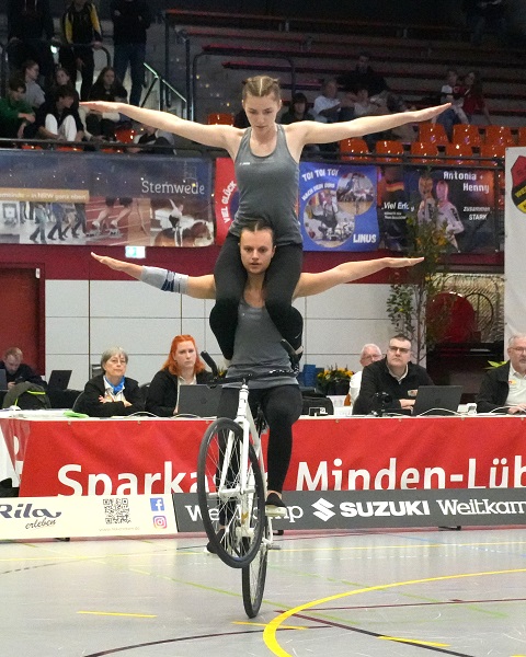 Für die beiden war es die Chance, sich mit den besten Kunstradsportlerinnen Deutschlands – darunter auch die amtierenden Weltmeisterinnen – zu messen. Die ersten Trainings in der Halle verliefen vielversprechend: Der Hallenboden in Lübbecke hatte große Ähnlichkeit mit dem in ihrer Heimhalle, was den beiden sofort ein gutes Fahrgefühl vermittelte.